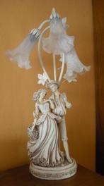 Decoratieve tafellamp met sculpturen uit de angelica collection bestaande uit metalen stengels en bladeren, 3 lampekappen in melkglas en een snoer met schakelaar. In perfecte staat. Hoogte:67 centimet