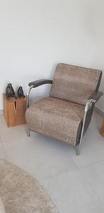 Leolux scylla fauteuil stof / leder bruin/beige gemêleerde stof bijpassende bruine lederen - zijkanten + armleggers poten en rugbu