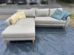 Canapé d'angle robuste gris clair (tissu) avec fonction couchage gigogne et compartiment de rangement intégré, idéal comme lit