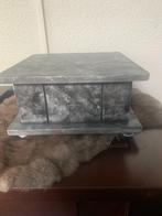 Urnenkistje van hout voor huisdier maat 25x25x13 cm hoog. Eventueel ook met hondenbeeldje erop te koop van diverse rassen. In de k