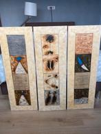 3-luik op doek afmetingen per luik: 34x98cm afgewerkt op houten kader bij shleiper beige en bruine tinten