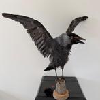 Opgezette kauw met gespreide vleugels breed 50 cm, hoogte incl voet 40 cm