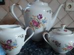 Zeer mooi fijn porselein theeservies met kleurrijke bloemen. Set is compleet. Een thee kopje heeft een barstje, zie foto. Verder ziet het er nog prachtig uit. Op te halen net over de grens in belgië.