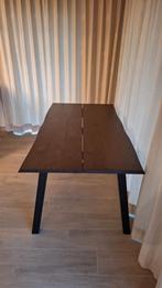Donker eiken eettafel 90x200 met extra verlengblad 90x245. Tafelblad in donker eiken fineer en zwarte poten in massief grenen en mdf. Op te halen in vichte.