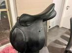 Wedstrijdjas van het merk fair play. Donkerblauw met witte afwerking, 2 steentjes op de rug en 2 steentjes aan de voorkant van de zakken. Er staat maat 34, maar het valt als een 36. Het is te groot vo