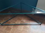 2 x identieke salontafel/bijzettafel, smeedijzer met glazen tablet afmetingen zijn 92 x 92 x 130 cm en hoogte 48cm beide samen voor 300€