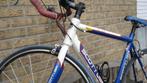 Een koersfiets alu kader scott usa licht blauwe kleur in zeer goede staat versnellingen aan het stuur alles afgewerkt met simano onderdelen 27 versnellingen 3 schijven vooraan en 9 achteraanmet klicp