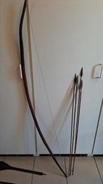 Ancien arcs a flèches ramené d'afrique fin des années 50,serait en bois d’acacia...? Cordage fil métallique . L'autre sans cordage hauteur arc 137 cm. Flèches pointe en métal, longueur 84, 89,