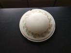 Plafonnière decoratief, mat/wit gekleurd glas. Doorsnee 50 cm, h. 12,5Cm, 3 lampen, gew. 3,9 Kg