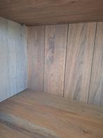 Mooie vitrinekast ( buffetkast) in massief eiken, zowel buitenkant en deuren als bodem en rug , alles massief. Met glas in bovende