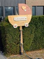 Bij deze verkoop ik ons geboortebord. Vastgemaakt aan een paal. Naambord kan appart los geschroeft worden om een nieuwe naam op te zetten. Met een beetje blauwe verf kan het ook dienen voor een jongen