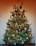 Sapin de noël avec boules et lumières. Utilisé mais plus que correct. Taille 180 cm de haut je vends ceci car nous n'avons plu