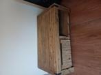 A vendre table basse de salon en bois, robuste bois epais, massif détails en métal (look vintage, industriel) avec tiroir de chaque côté et espace de rangement dimensions largeur 70 cm longueur 130 cm