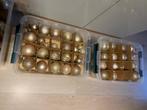 Boules et décorations de noël dorées à vendre. Ceci dans différents formats. Boîtes non incluses.
