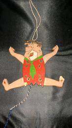 Houten trekpop van fred flintstone. Het is een traditioneel stuk speelgoed, vaak aangeduid als een "jumping jack" of "trekpop", waarbij aan een touwtje wordt getrokken om de ledema