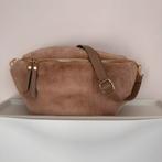 Beige schoudertas in donsuitvoering met verstelbare lederen schouderriem. Goudkleurig rits die aan beide kanten openritst. Afmeting b: 40cm - h: 15cm