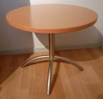 Salontafel met zware inox voet. Blad in beukfineer. Diameter 60 cm, hoogte 52 cm