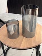 2 sfeer immitatie kaarsen in glas 1 is 28 cm hoog 1 is 16 cm hoog in goeie staat, geen krassen werken op aa batterijen