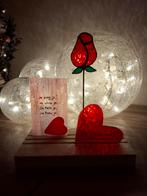 Valentin rose éternelle vitrail attrape-soleil attrape-soleil tiffany le cœur mesure 7 x 7 cm taille rose et cadre (voir photo) la planche mesure 14 c