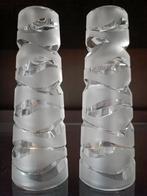 Cette magnifique paire de bougeoirs mi-transparents mi-opaques s'accordera sur toutes les tables dans tous les types d'intérieur. Chaque bougeoir a une hauteur de 17,5cm et une base ovale de 6