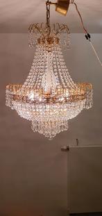 Lustre en cristal ancien, pur, antique, poli, testé et magnifique, diamètre 70 cm, hauteur sans chaîne 50 cm, hauteur avec chaîne 65 cm, chaîne réglab
