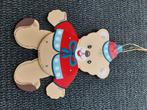 Beertje in hout met trekkoortje- ongeveer 30 cm hoog. De staat is nieuw.