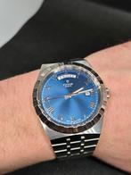Montre tudor royal date and day référence 29600 mouvement automatique calibre t603 cadran bleu avec une finition soleillé, orné de chiffres romains appliqués. Matériaux acier inoxydable la montre est
