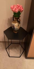 Nieuwe bijzettafel, zwart gelakt metaal. Afmetingen, hoogte 50 cm, doormeter 40 cm.