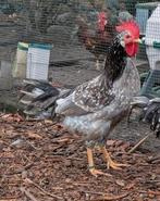 Hallo ik heb een blauw witgeparelde ancona haan van 2025 die weg mag. Eventueel samen met zijn zwart witgeparelde zus. Prijs: &eur