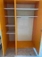 Kleerkast van ±25 jaar oud, duidelijk gebruikt maar nog stevig en functioneel. De kast is in het verleden al eens geschilderd geweest en kan nog overschilderd worden. Afmetingen: h 210 cm x b 142 cm x