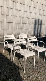 Set van 4 stevige metalen tuinstoelen met armleuningen. Ideaal voor tuin, terras of balkon. De stoelen zijn gebruikt maar nog in goede en stevige staat. Normale gebruikssporen aanwezig (zie foto’s). V