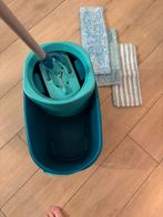 Emmer met wringopzet op wieltjes en 3 dweilen. Gebruikt, maar goed onderhouden, ideaal voor starter of op kot.