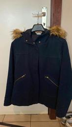 Donkerblauwe jas met intacte rits en drukknopen, binnenzakje, twee zakken met intacte ritsen vooraan. Met kap, jbc - maat 40, kan nog perfect gedragen worden.