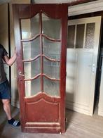 Zware massieve houten binnendeur met mooie glas elementen. Alles glas is nog in tact. Hoogte 210cm breedte 78,5cm dikte 4,5cm