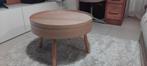 Opbergruimte onder het tafelblad dat eraf gaat en als dienblad gebruikt kan worden. Kleine beschadiging binnenin die buitenaf amper zichtbaar is