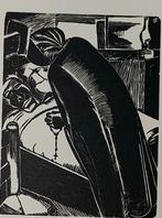 Jozef cantré 26/12/1890-29/08/1957 houtgravure drinkende man, rokende vrouw niet gesigneerd, wel met de initialen jc linksonder li