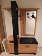 Moderne garderobekast met spiegel en zitbank. Ideaal voor de hal of slaapkamer. De kast is gemaakt van hout en metaal, en biedt voldoende opbergruimte voor jassen, schoenen en andere accessoires. De z