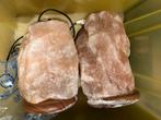 Zoutsteen lampen met voet in hout. Prijs voor beide lampen samen. Het wit onderaan komt van het opnemen van het vocht uit de ruimte tijdens stockage. Is er goed af te wassen. Beide in een professionel