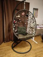 Staander met leuke eistoel, materiaal rotan of kunststof, zeer stevig. Goeie zitvorm. Je maakt het zo comfortabel als je zelf wil