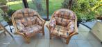 Fauteuils, table basse et petit meuble de rangement en rotin