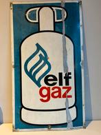 Mooi vintage reclamepaneel elf gaz in metaal 1986 met gebruikssporen maar heel mooi voor aan de gevel of in je mancave