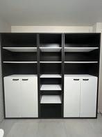 Vends lot de 3 bibliothèques noir et blanc en parfait état. Dimensions: - les 2 bibliothèques avec portes de rangements mesurent 90 cm de large sur 40 de profondeur et 2m15 de hauteur - la bibliothèqu
