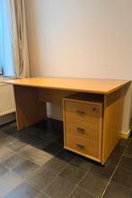 Beau bureau en bois en parfait état. Il y a de légères traces d'usure (voir photos), mais elles ne sont pas toujours et difficiles à voir. + Commode à roulettes avec 3 tiroirs dont 1 avec serrure