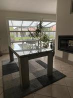 Prachtige en stevige houten eettafel met een op maat gemaakte geharde glazen beschermlaag (veiligheidsglas – ce gecertificeerd). De glazen toplaag is