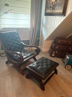 Prachtige koloniale relaxzetel (planter’s chair) met bijpassend voetenbankje. Deze stijlvolle zetel is in nieuwstaat, zonder gebru