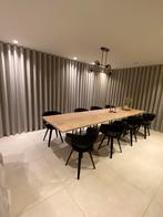 Eettafel in yellow pine met gelakt stalen onderstel afmetingen: l 350 x b 100 x h 75 cm uniek stuk tafelblad bestaat uit 2 delen amper 6 maanden gebruikt - enkele kleine putjes als gebruiksschade