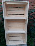 Houten bakken geschikt voor decoratie of te stapelen. Ambachtelijk gemaakt en extra gelijmd. Juiste maten zijn 56 cm lang, 37 breed, 27 hoog. 3 Voor 4