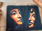 Egyptische doek op papyrus. Heeft altijd in de rol opgeborgen gezeten.