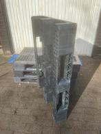 7 plastiek paletten van 120 x 80 cm. Zware uitvoering met lichte beschadiging onderaan. 7,00 € / stuk of 40,00 € voor de 7 stuks.