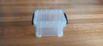 Kleine plastic bakjes met dekseltje om gesorteerd dingen in te bewaren. Maten: buitenmaten: 65mm x 83 mm, hoogte: 50mm binnenmaten: 49mm x 64mm, hoogte: 44mm 165 stuks bij voorkeur in 1 koop.